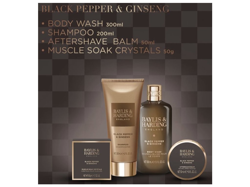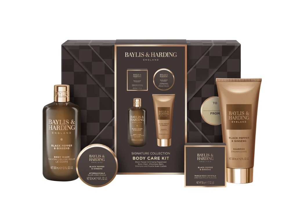 Tápete, jak vybrat dárek, který v sobě spojuje praktičnost, eleganci a nezaměnitelnou mužnou vůni? Tato dárková sada od Baylis & Harding z ikonické řady Black Pepper & Ginseng je navržena pro muže, kteří o sebe rádi pečují a potrpí si na kvalitu. Sofistikovaná kombinace černého pepře a ženšenu dodává energii a pocit luxusu každé koupelně.