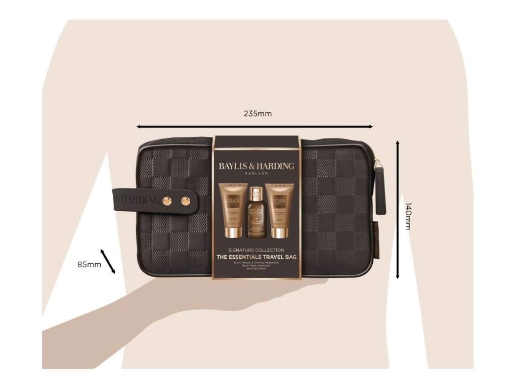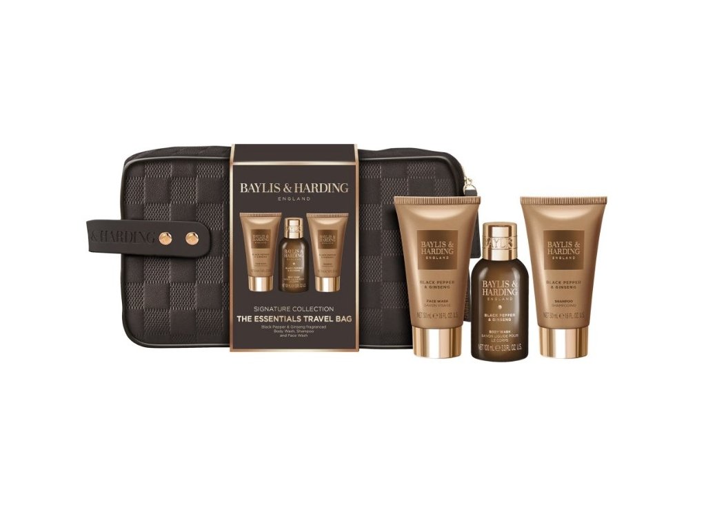 Tápete, jak zajistit, aby i na cestách byla vaše péče o tělo nekompromisně luxusní? The Essentials Travel Bag z prestižní kolekce Signature Collection od Baylis & Harding je navržena pro muže, kteří vyžadují styl a efektivitu v jednom balení. Tato sada obsahuje nezbytné základy pánské hygieny, uložené v prémiové hnědé tašce s elegantním kostkovaným vzorem a detaily ve zlaté barvě.